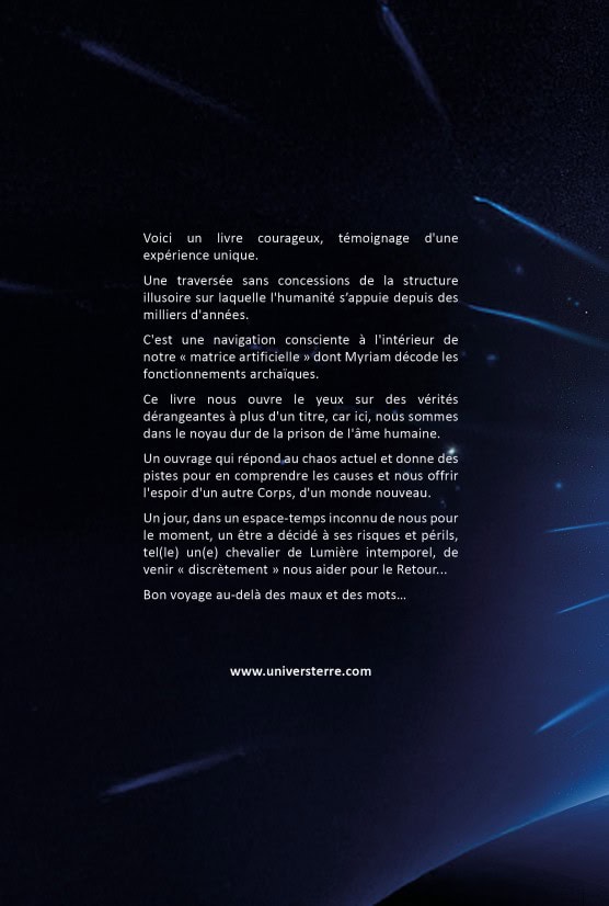 C’est une navigation consciente à l’intérieur de notre ” matrice artificielle ” dont Myriam décode les fonctionnements archaïques.